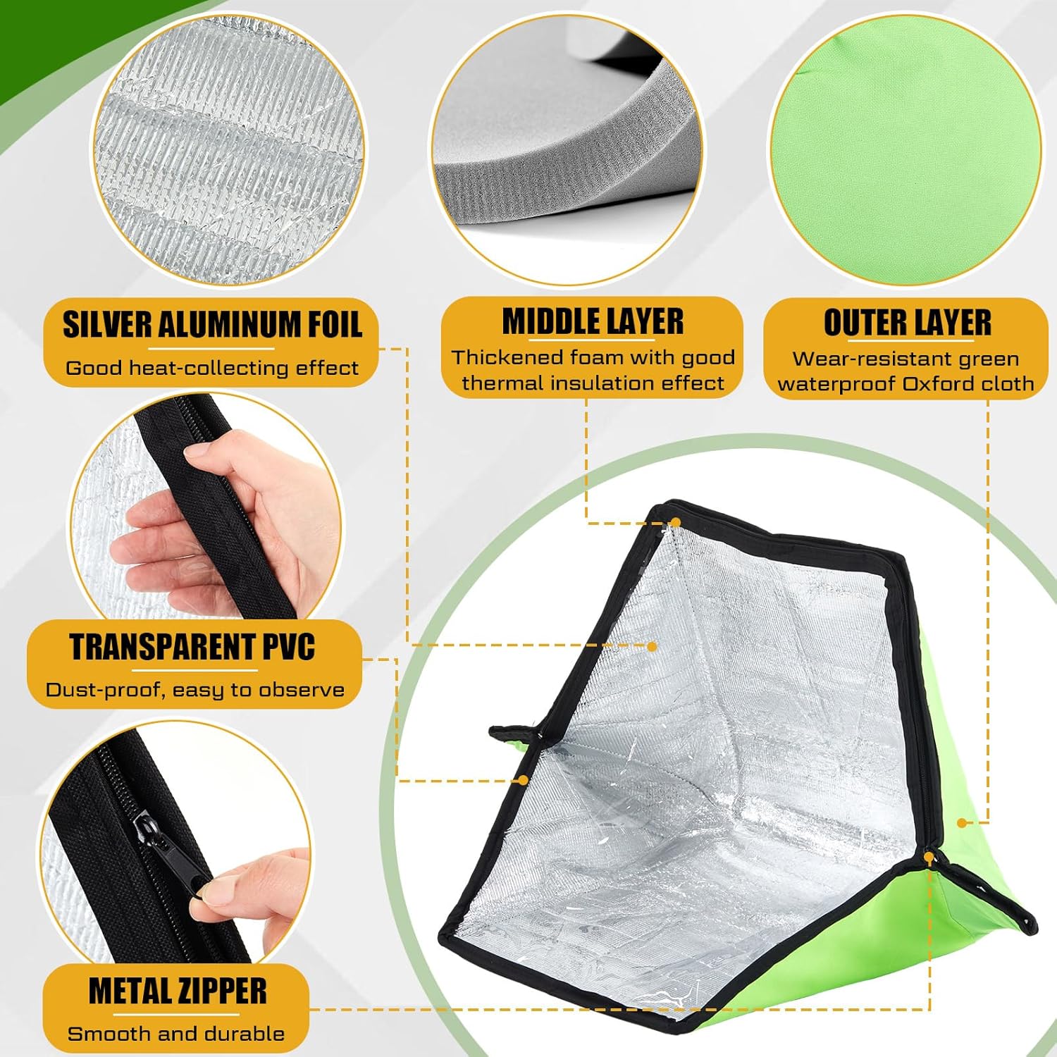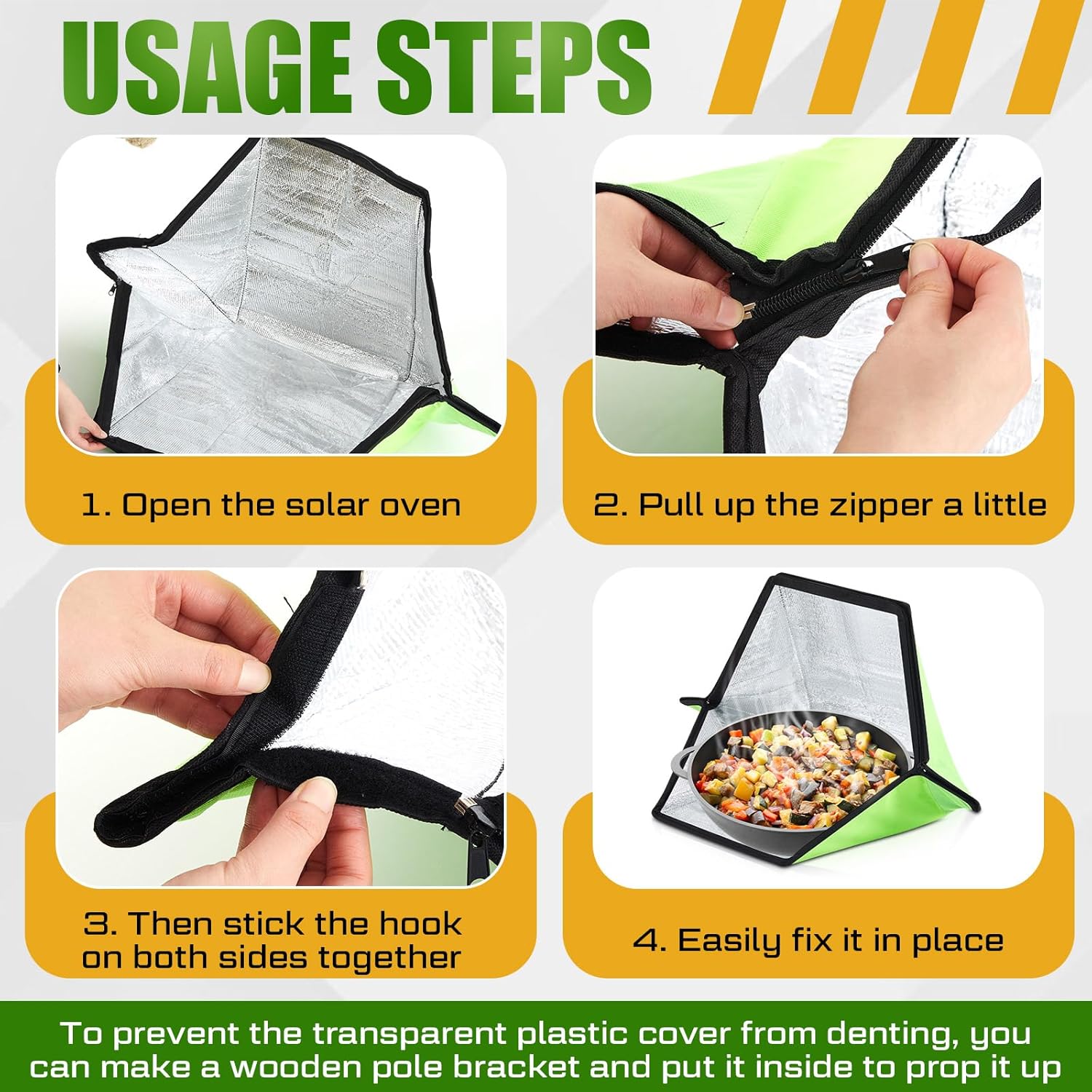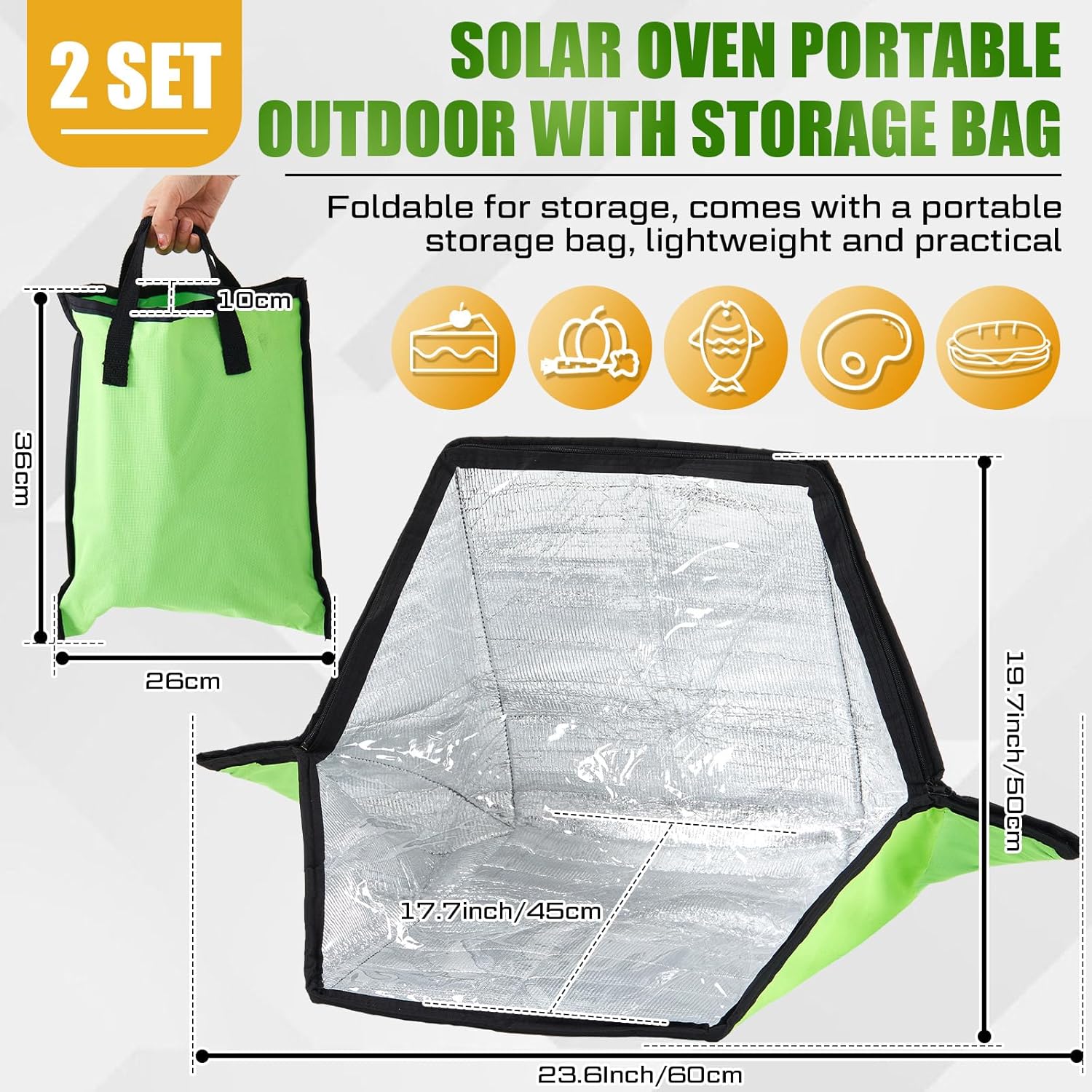 - Product includes: The product includes 2 sets green of camping ovens portable, which use sunlight to cook or heat food. They are foldable for storage and come with a handy storage bag, making them lightweight and practical