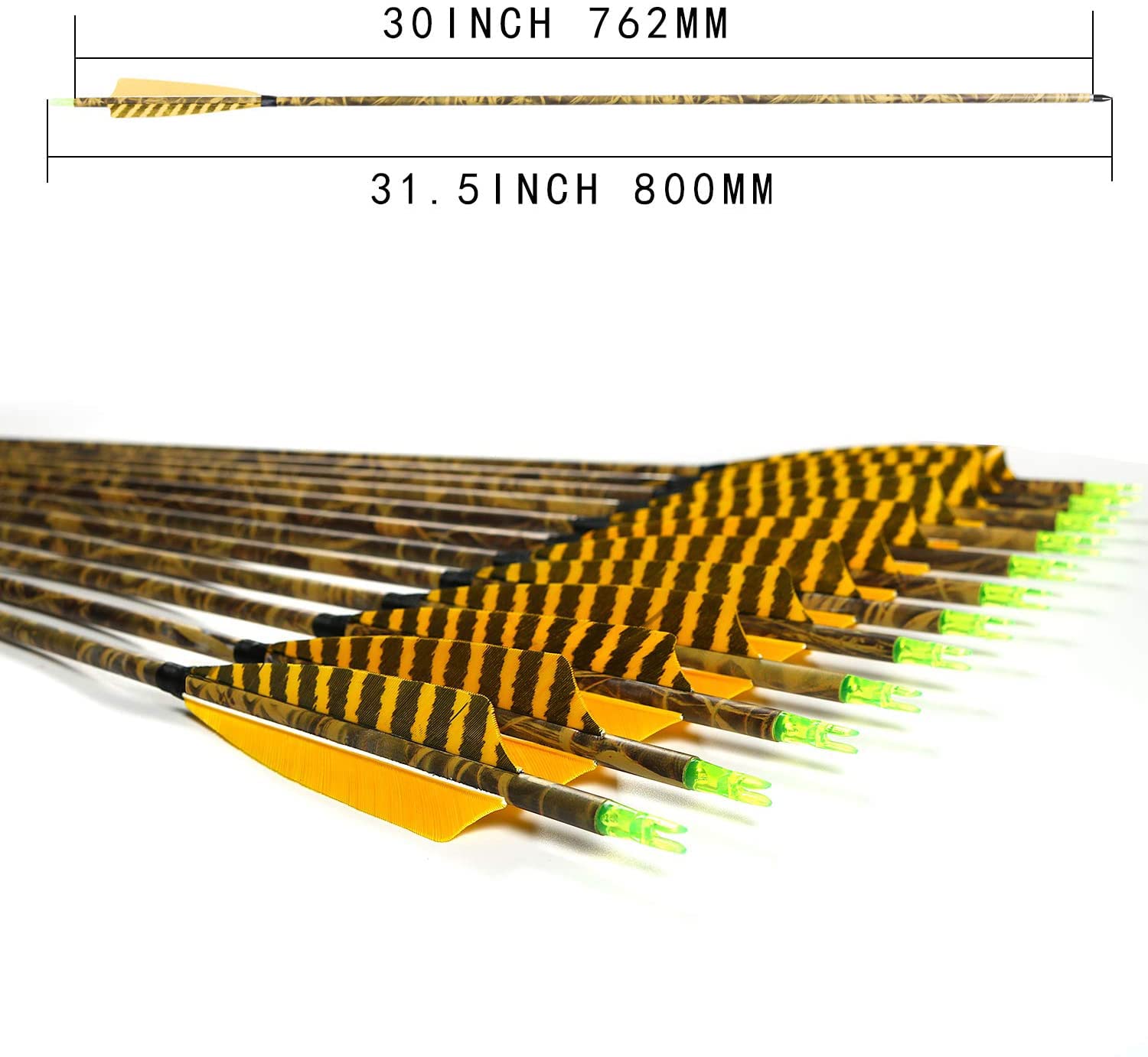 - 💕 Arrow Vane: Fletching with 3pcs yellow camo 5'' vanes ture turkey feathers.