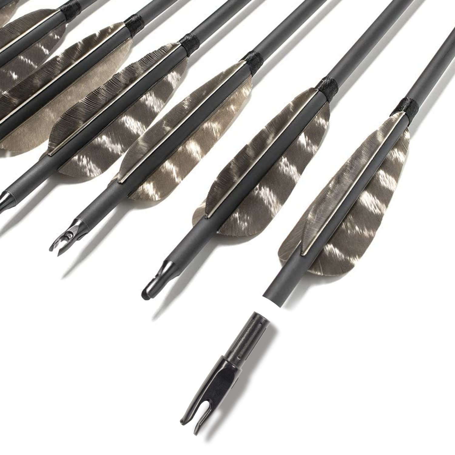 31Inch Carbon Arrow, Practice Hunting Arrows, Camo Turkey Feather Fletching, Arrows for Compound & Recurve Bow with Removable Tips Adjustable Nocks