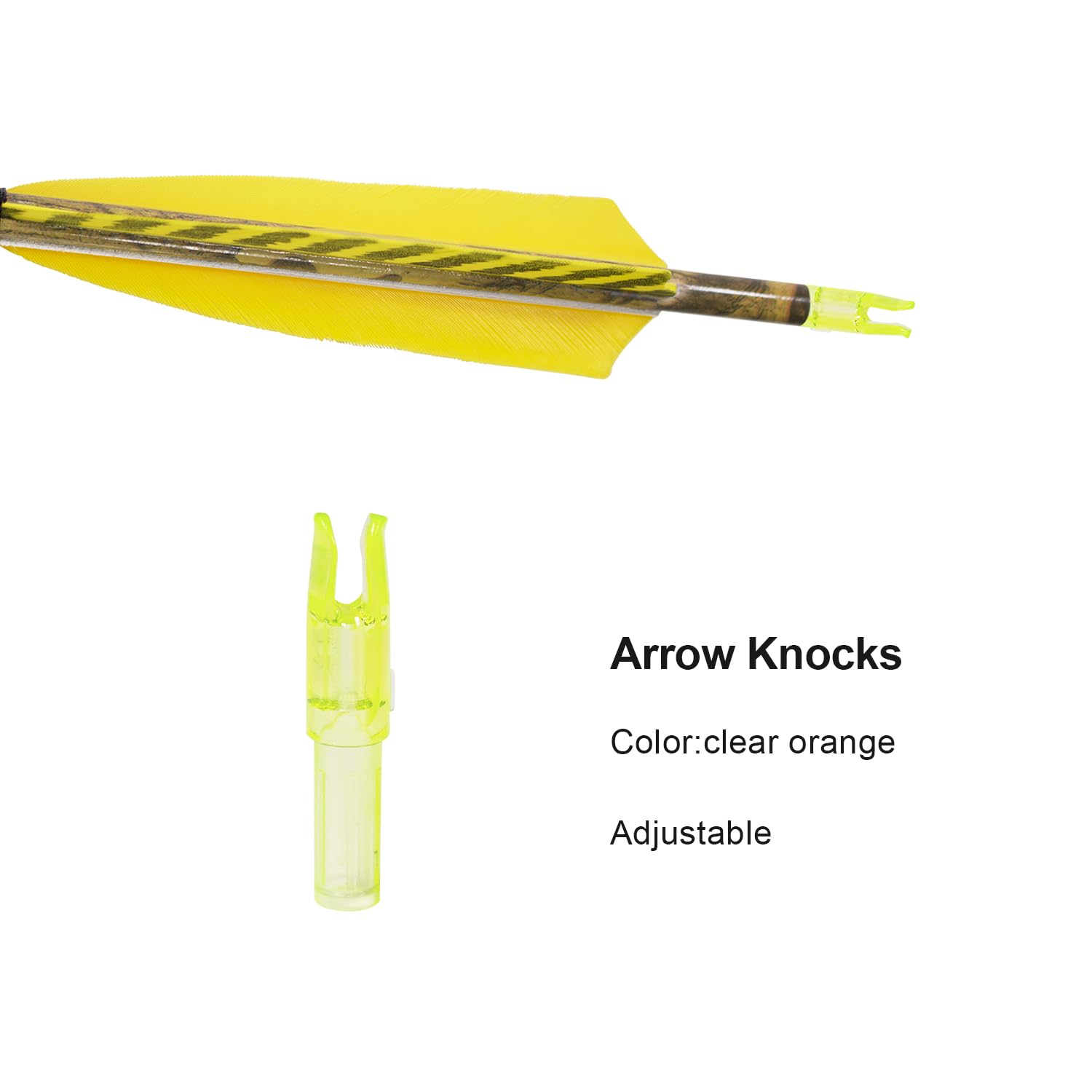 - 💕 Adjustable Nocks: The orientation of nocks is adjustable to fit for both compound bow and recurve bow. You only need a coin to rotate it easily. With replaceable nocks for free.