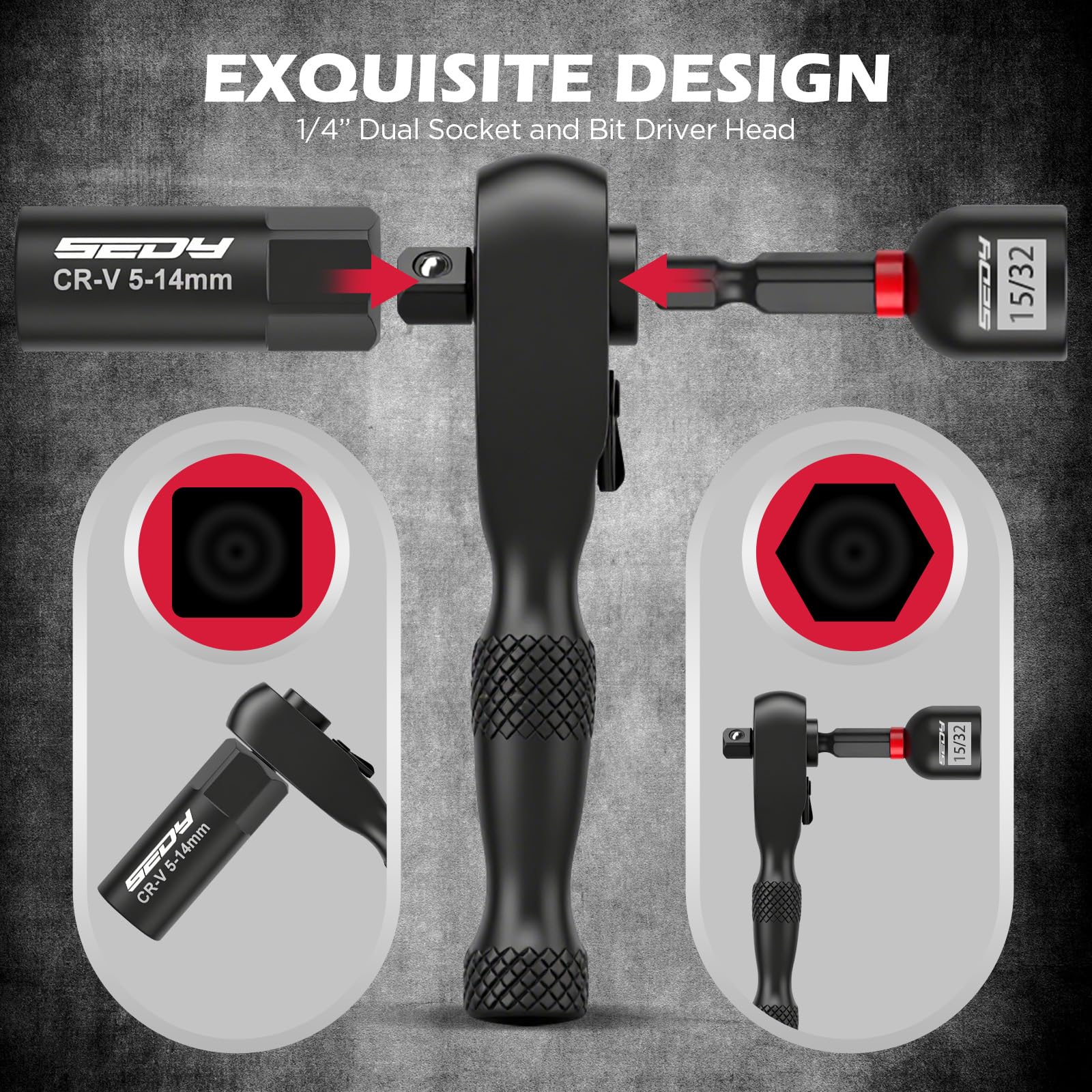 - DUAL-DRIVE RATCHET EFFICIENCY - Combines socket and bit driver heads with a precision ratchet mechanism, enabling seamless switching for nuts, bolts, and screws while boosting work efficiency by 50% in auto repair, home installation, and machinery maintenance