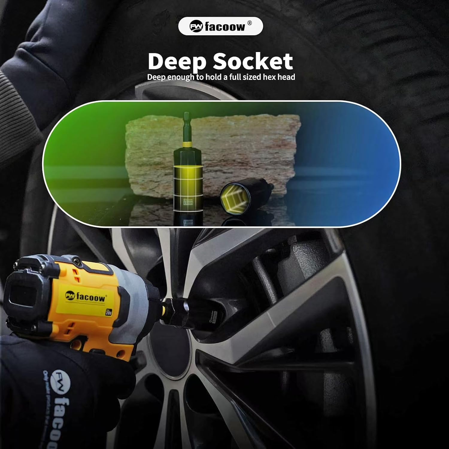 - Deep Nut Driver Set: Includs 7 metric deep impact socket (8mm 10mm 13mm 14mm 16mm 17mm 19mm) and 4 SAE deep socket for impact drill (5/16" 3/8" 1/2" 7/16"). Speciallyt included a 14mm deep nut driver that customers needs.