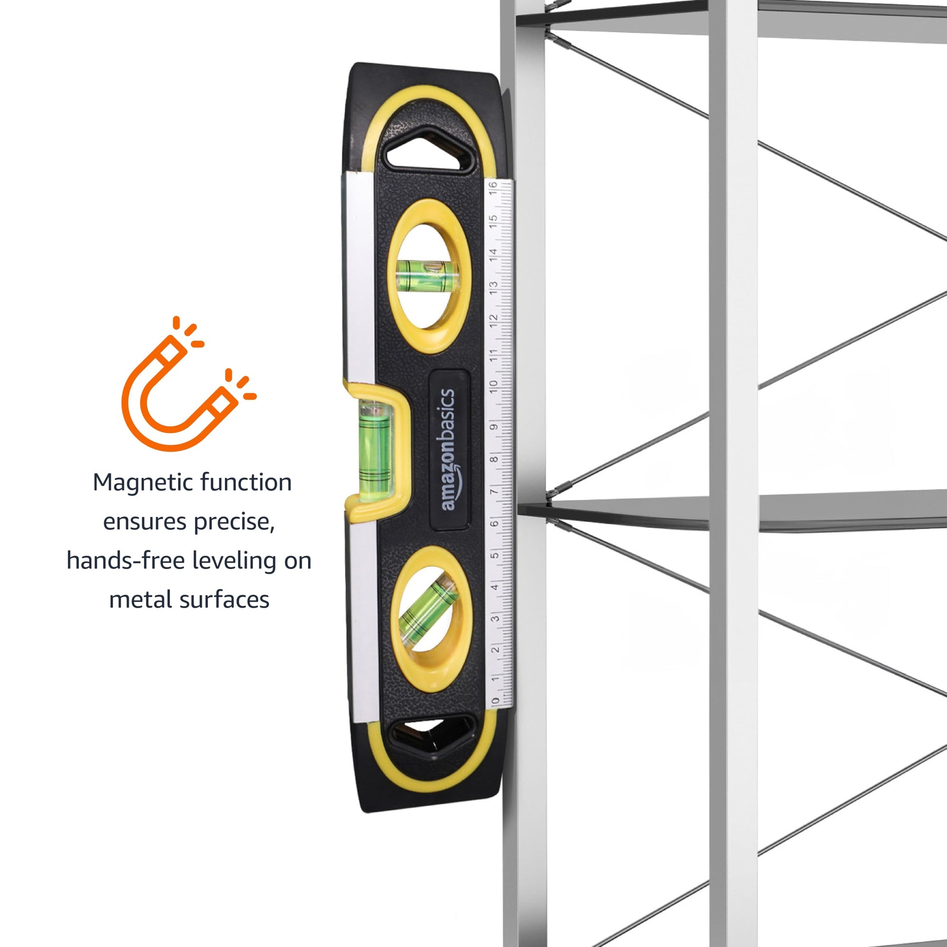 Amazon Basics 9-Inch Magnetic Torpedo Level and Ruler, 180/90/45-Degree Bubbles