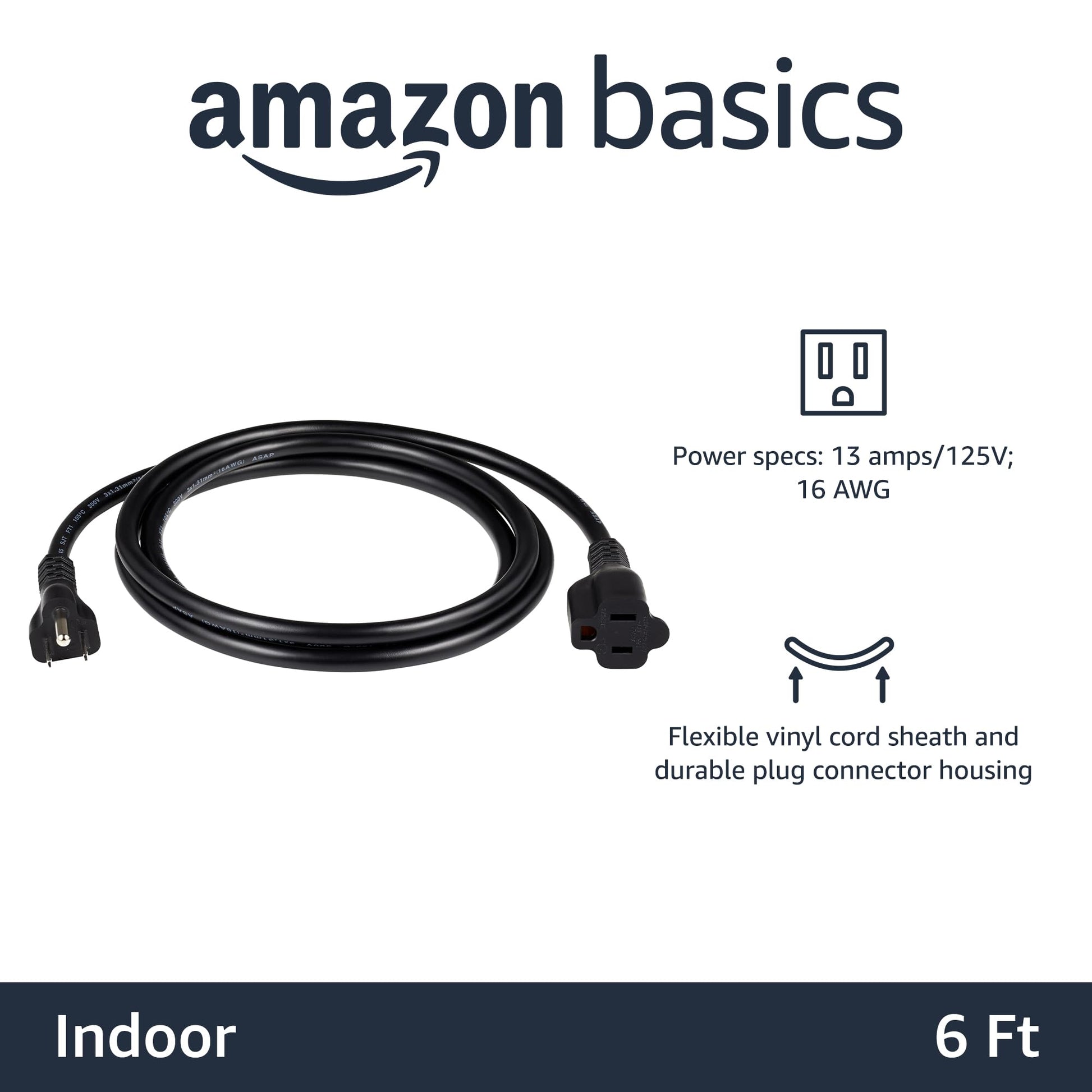 Extension Cord, 20 Ft, 3 Prong Outlet Extender, Indoor Extension Cord, 13 Amps, 125V, Black