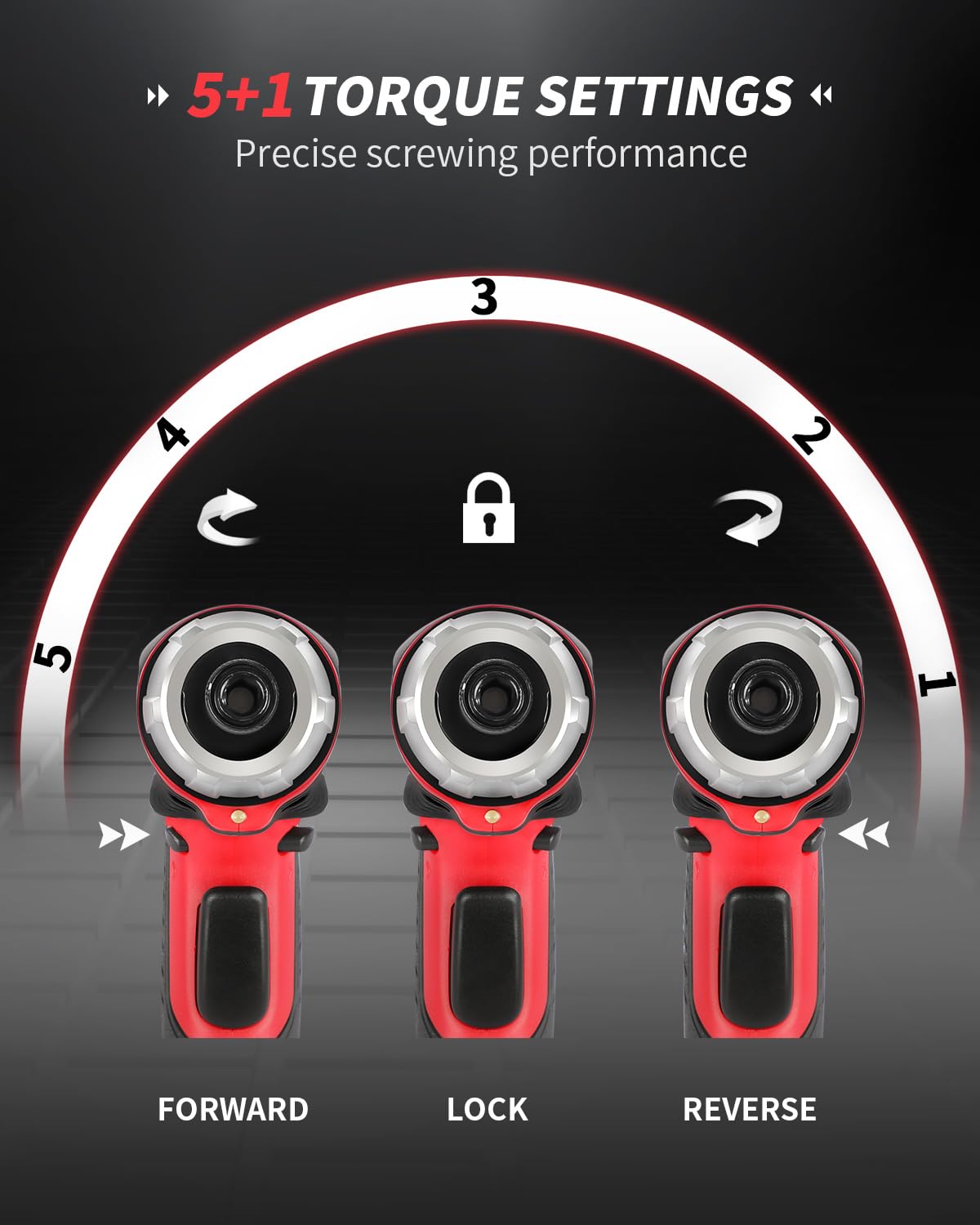 - Humanized Designs: Designed to be compact and lightweight, the electric screwdriver facilitates you with one-hand operation, is easier to control and grip. Bright front LED Light provides automatic illumination for accurate work in dark environment