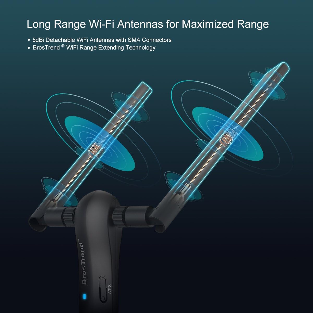 - BOOST YOUR RANGE: Comes with 2 pieces of 5dBi High Gain WiFi Antennas, this Long Range WiFi Adapter Ensures Range Extended WiFi and Superior Stability on Your Desktop, Laptop, PC