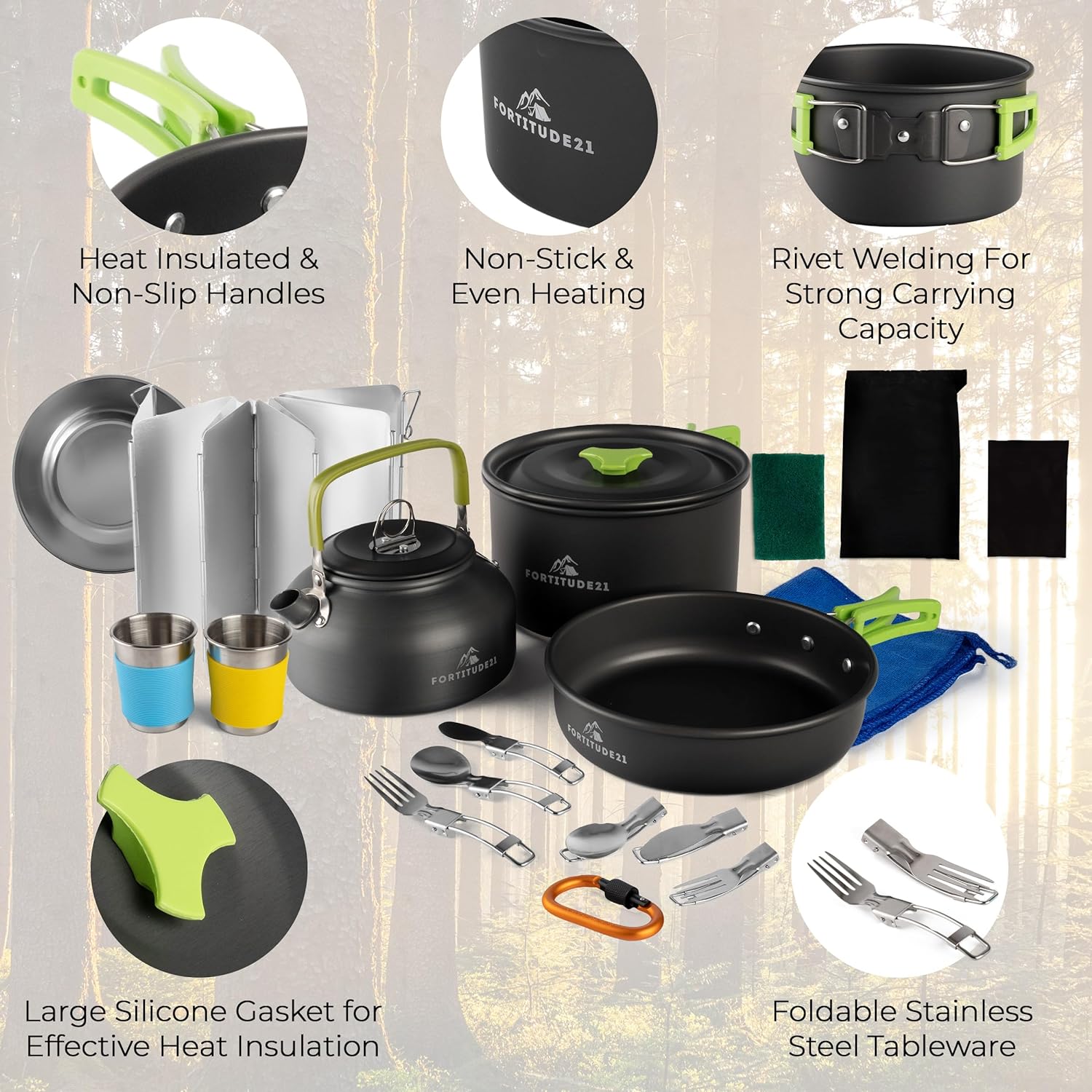 Camping Cookware Set - 19-Piece Lightweight Backpacking Cookware with Pots, Pans, Utensils - Compact Outdoor Cooking Kit for Camping, Hiking, Backpacking & Survival