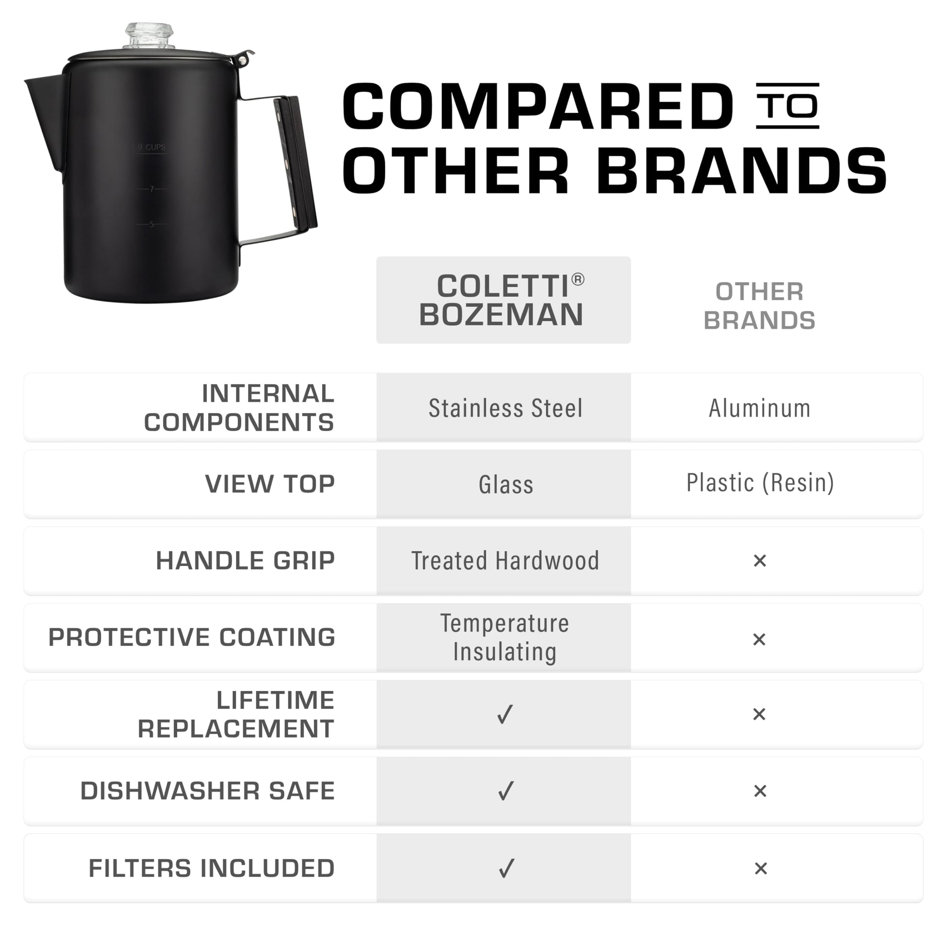 COLETTI Black Bozeman Percolator Coffee Pot — Camping Coffee Pot, Coffee Percolator Stovetop – America’s Sleekest Percolator – Pure Stainless Steel, NO Aluminum or Plastic (9 Cup)