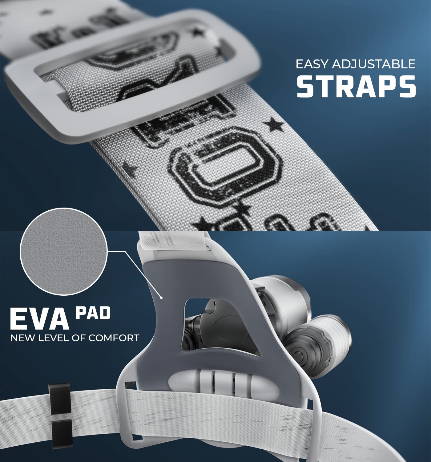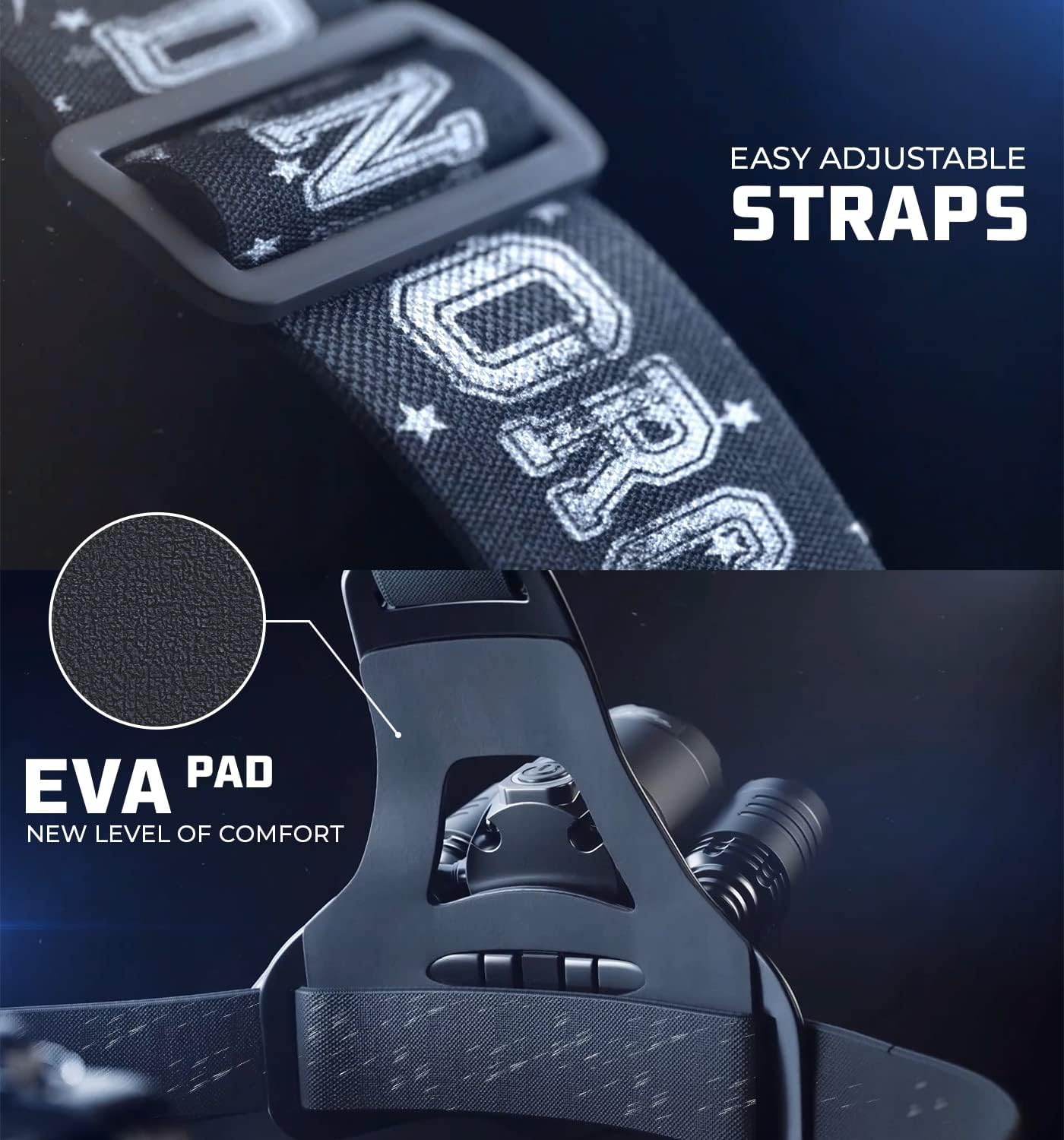 - CUSTOM MADE COMFORT – This head lamp isn’t just tough, it’s also designed for maximum comfort. Enjoy temperature control, thanks to the sweat-resistant headband. Its adjustable sizing makes it a custom made head light for your head.