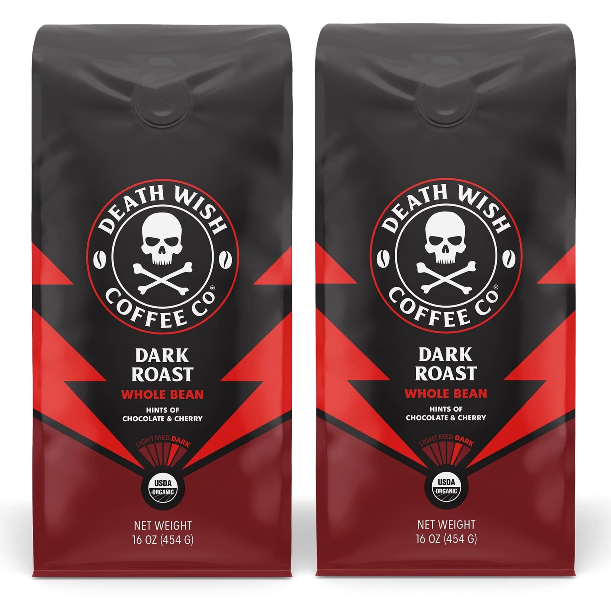 Death Wish Coffee, Organic and Fair Trade Dark Roast Whole Bean Coffee, 16 oz