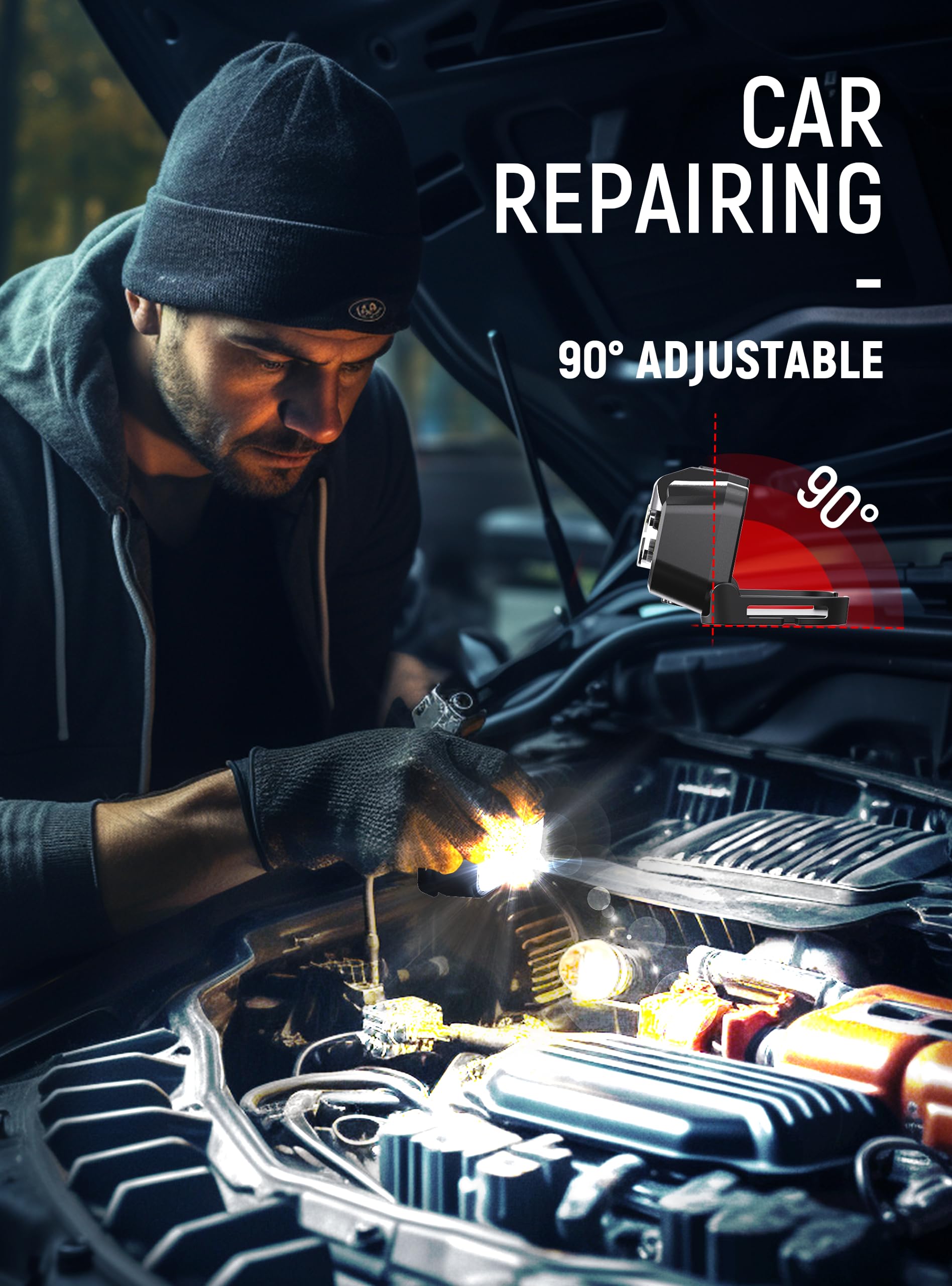 - 【Max 90°Adjustable & Ultra Compact】Our headlamp rechargeable is only weighing 2.1 OZ, comfortable and lightweight. Features a MAX 90°adjustable design that can be firmly fixed in place to avoid sliding. Our elastic headband is designed with your comfort in mind. It offers a convenient and simple adjustment buckle that effortlessly accommodates any head size. Perfect and suitable for all ages, it allows you to easily customize the length and achieve a perfect fit.