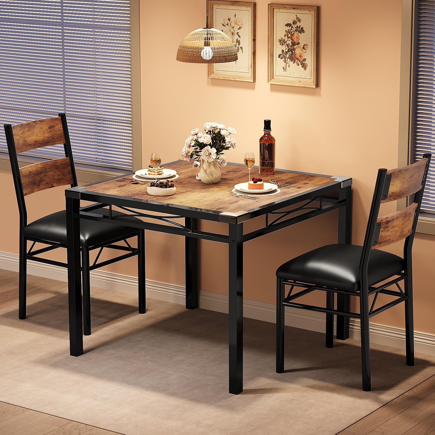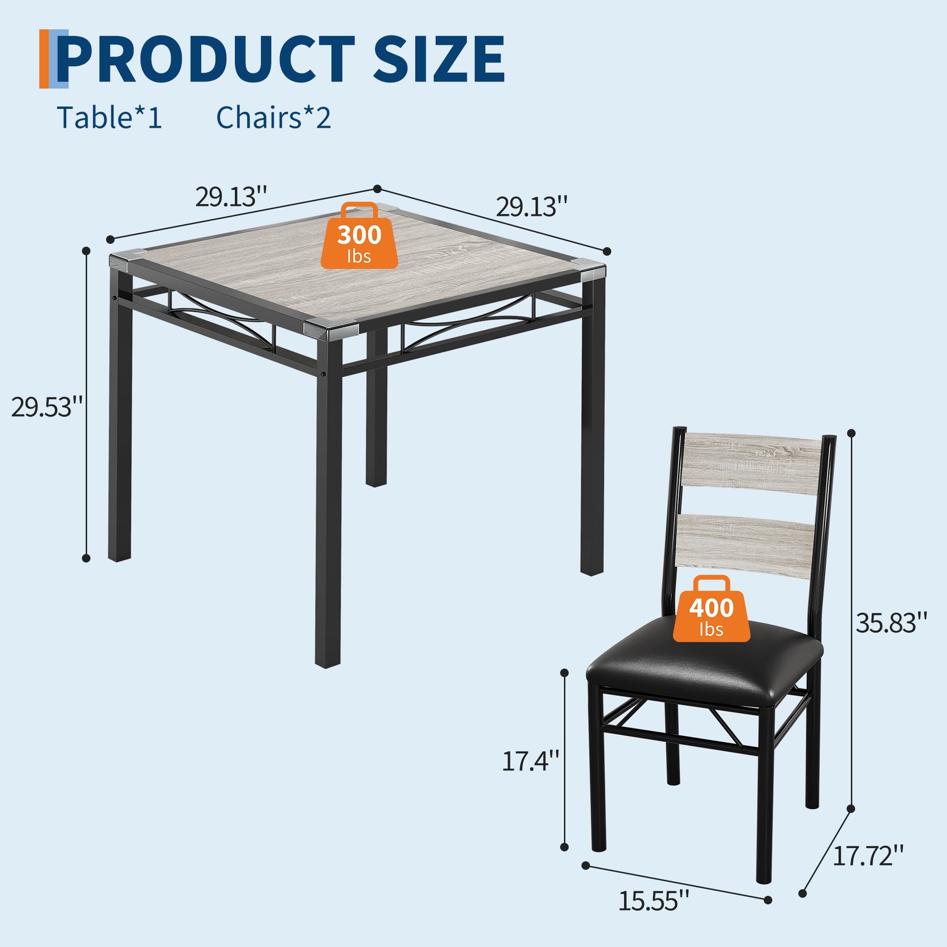 - Space Saving Design: This small dining table set for 2 has a dining table that measures 29.1"(L) x 29.1"(W) x 29.5 "(H) and dining chairs that measure 15.6"(L) x 17.7"(W) x 35.8"(H), which can comfortably seat 2 people. The compact design makes it an ideal space-saving solution for small spaces such as apartments, kitchens, studios, and other limited spaces. When not in use, the kitchen chairs can be neatly stored under the kitchen table for easy storage and space saving