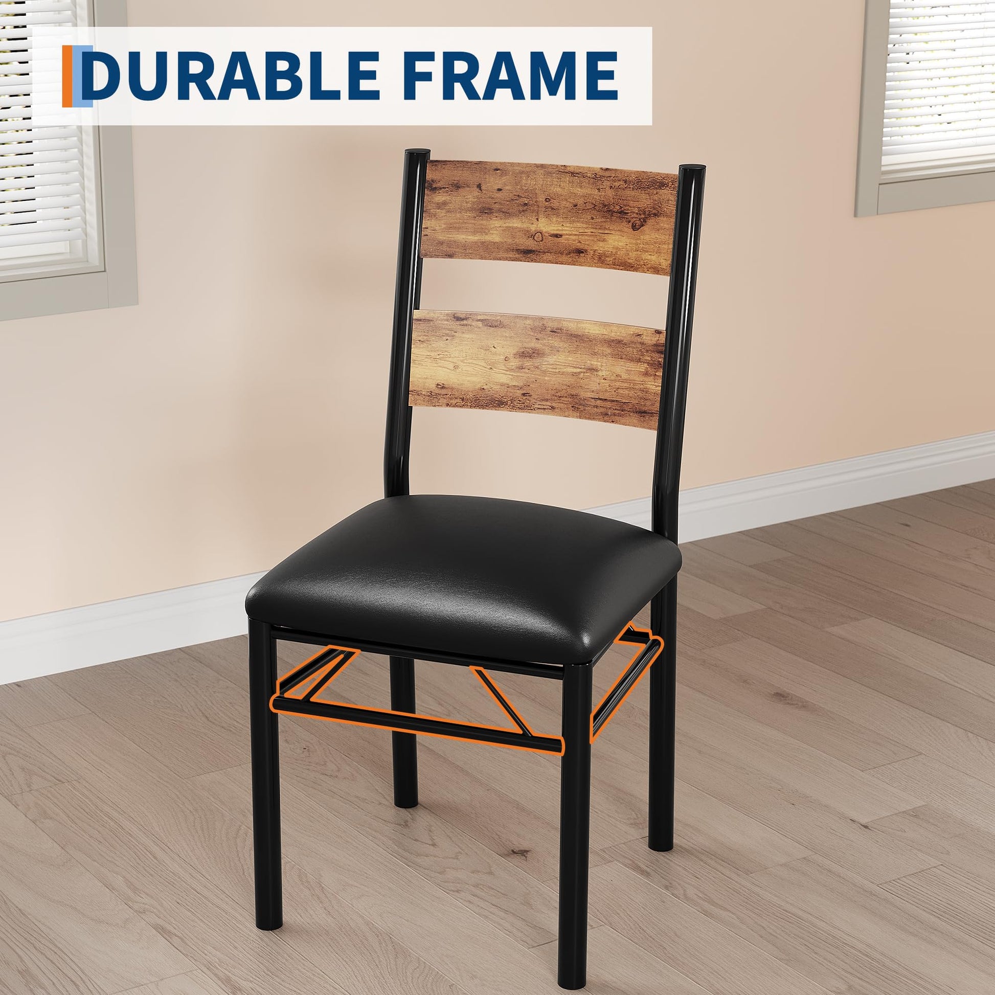 - Sturdy and Stable: Our kitchen table chairs set of 2 have extra thickened steel frames and are supported by metal legs. The structure is solid; thick wood and solid metal materials with a smooth surface ensure sufficient load-bearing capacity to bring you a reliable dining experience. The dining table can bear up to 220 pounds, and kitchen chairs can bear up to 400 pounds