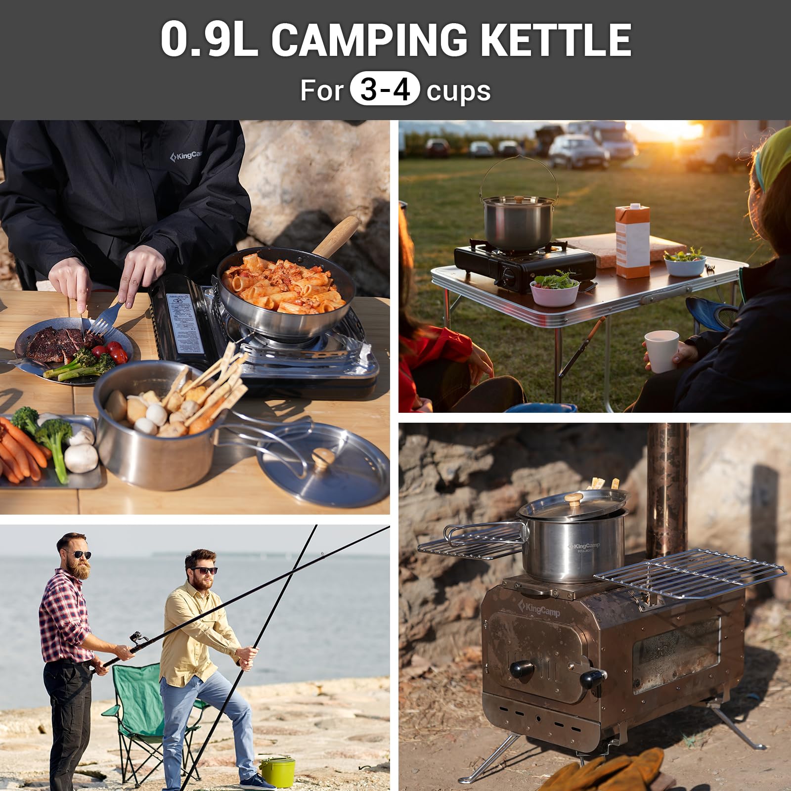 KingCamp Camping Cookware Set 304 Stainless Steel Campfire Cooking Pots Pan and Kettle with Travel Tote Bag for Camping Outdoor Kitchen Cooking Picnic for 4-6
