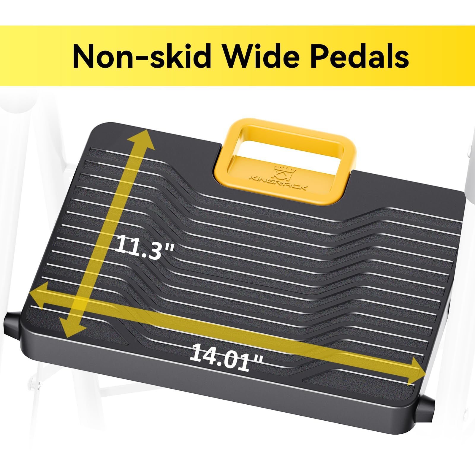 - 14.01"x11.3" Wide Non-Skid Pedals: Equipped with spacious, non-slip pedals, this ladder provides increased foot contact for enhanced stability and safety, the large anti-slip pedals ensure secure footing for all home use