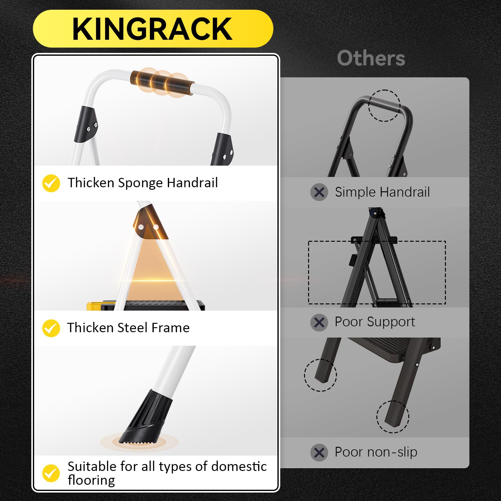 - 800LBS Heavy-Duty Capacity: The KINGRACK 4-step folding ladder is constructed from premium steel for unmatched strength, supporting up to 800 pounds, it combines superior load capacity with safety, offering a durable and safe solution for all your heavy-duty tasks