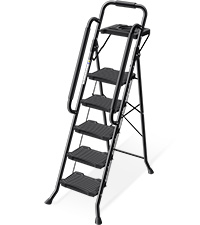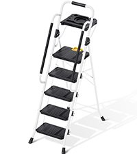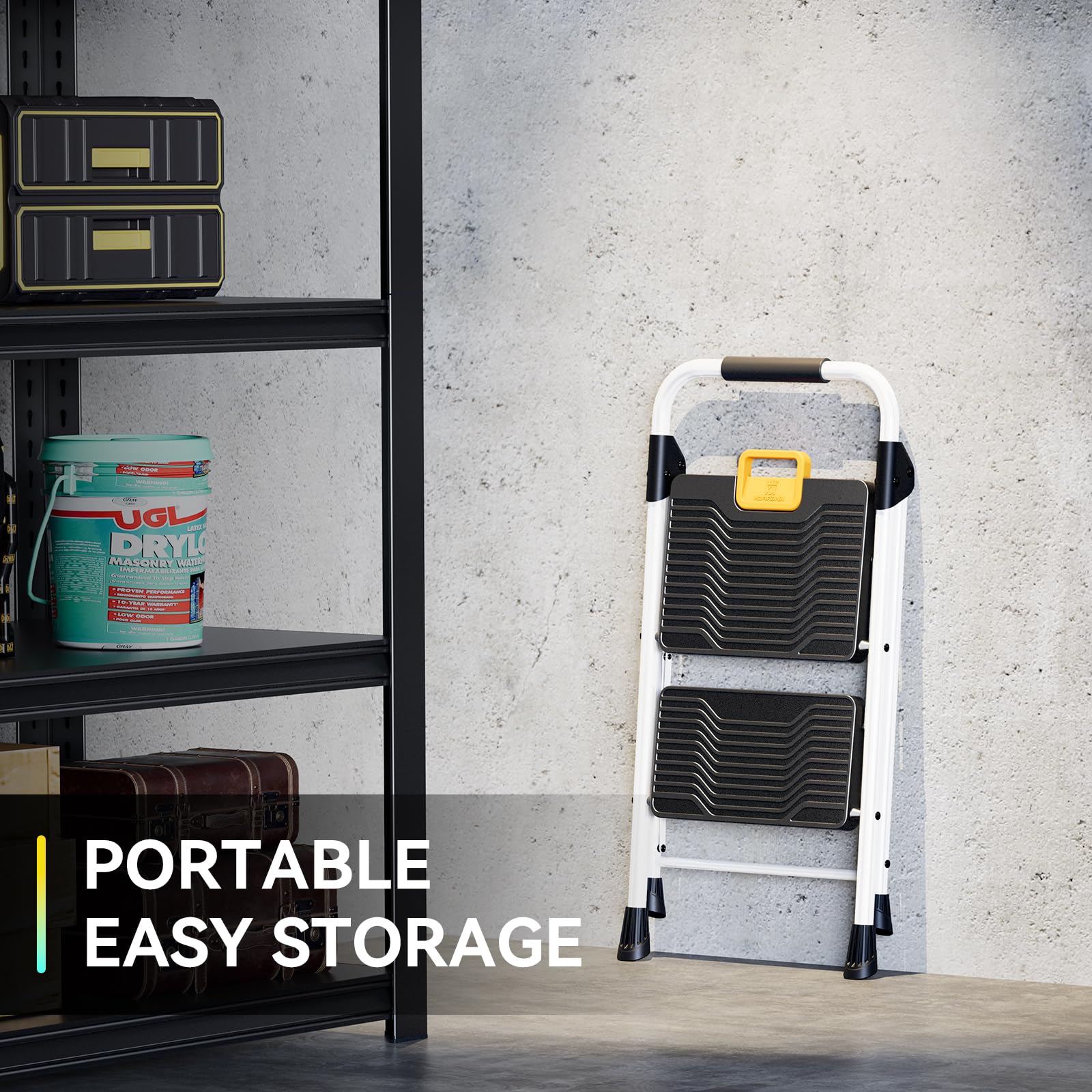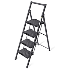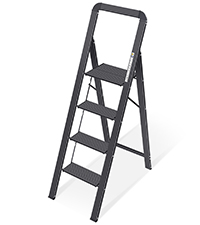 - Ergonomic Safety Lock: This 4-step foldable ladder features a grip-style safety lock designed for comfort and ease, its ergonomic shape fits naturally in your hand, making it simple to fold and secure while ensuring stability during use