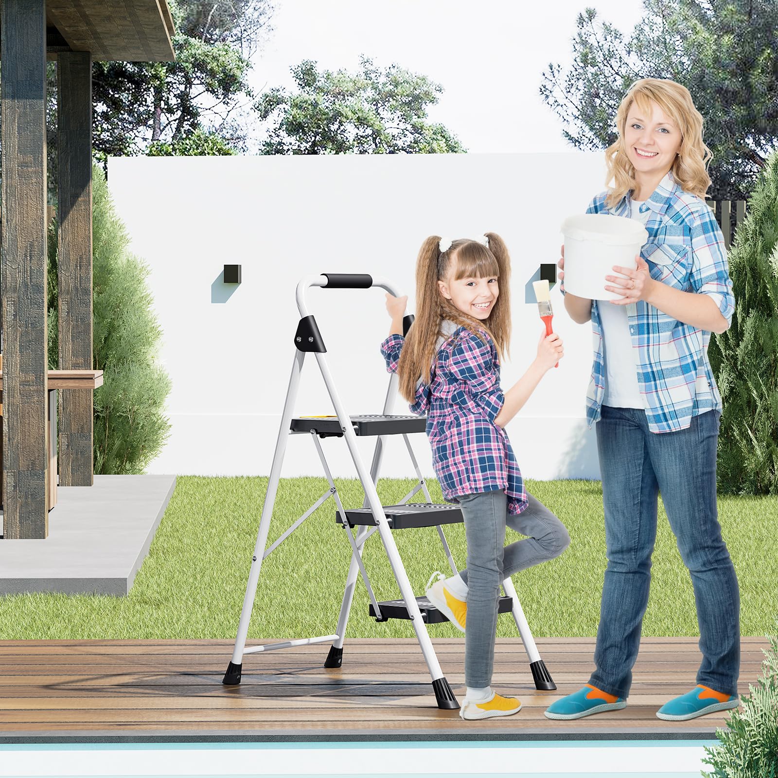 KINGRACK 4 Step Folding Ladder, 800lbs Capacity Step Stool with Safety Lock, Non-Skid Wide Pedals, and Handrail, Lightweight, Household Ladder for Home, Kitchen, Pantry, Closets, and Office Use, White