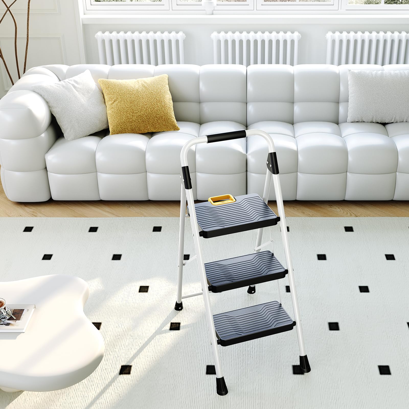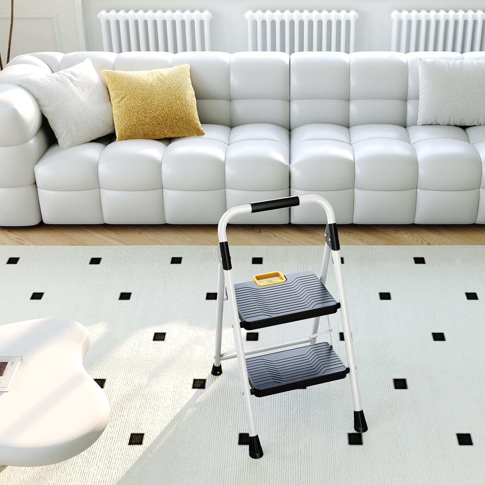 - Safety and Stability: Our 4-step stool is designed with soft sponge handrails for comfort, thickened steel for added stability, and shark-tooth textured, anti-slip feet for maximum grip, it keeps you safe and steady on any surface