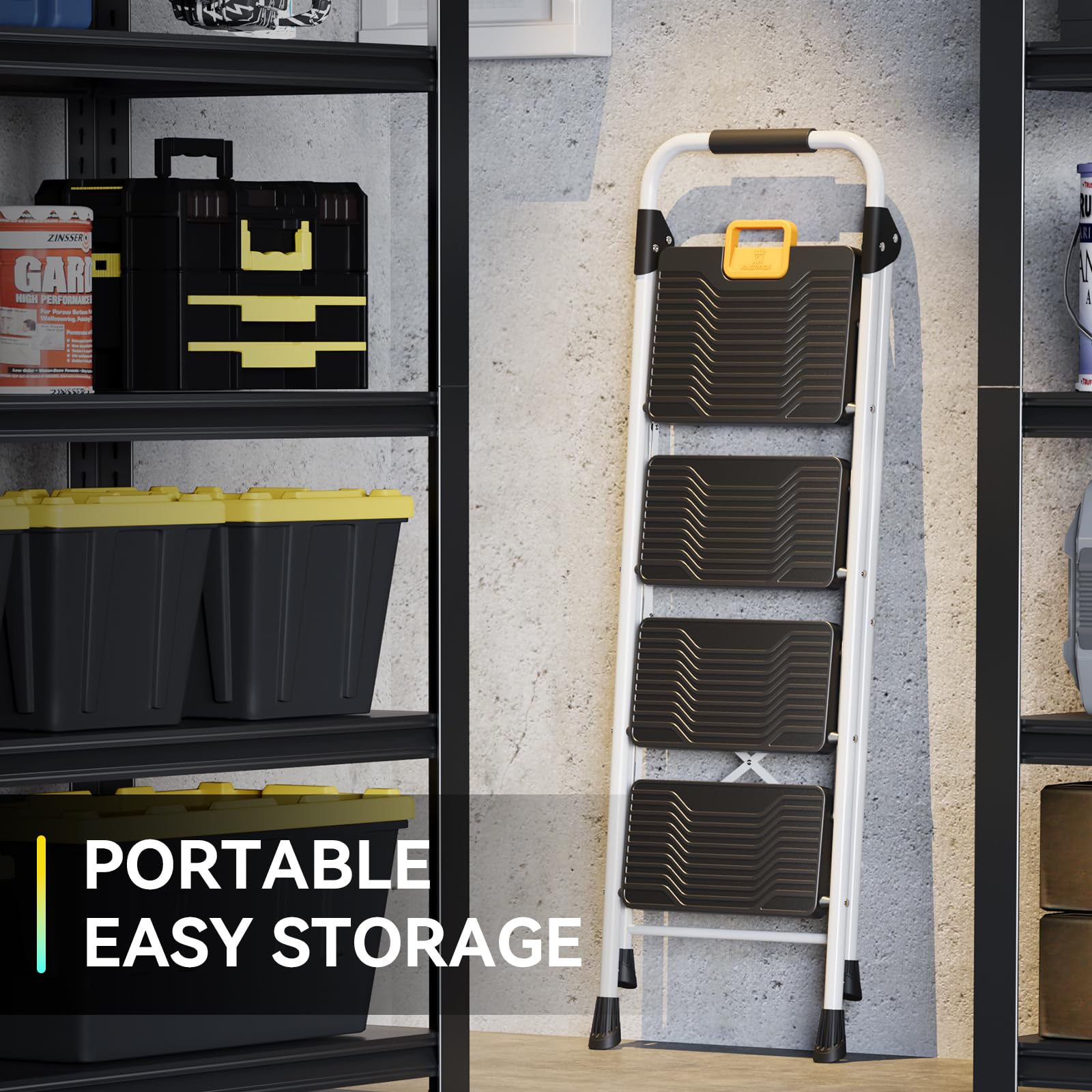 - Versatile Use: This 4 step folding ladder improves efficiency and saves energy, it's essential for cleaning, painting, decorating, and all your DIY projects, making it perfect for home offices and both indoor and outdoor spaces