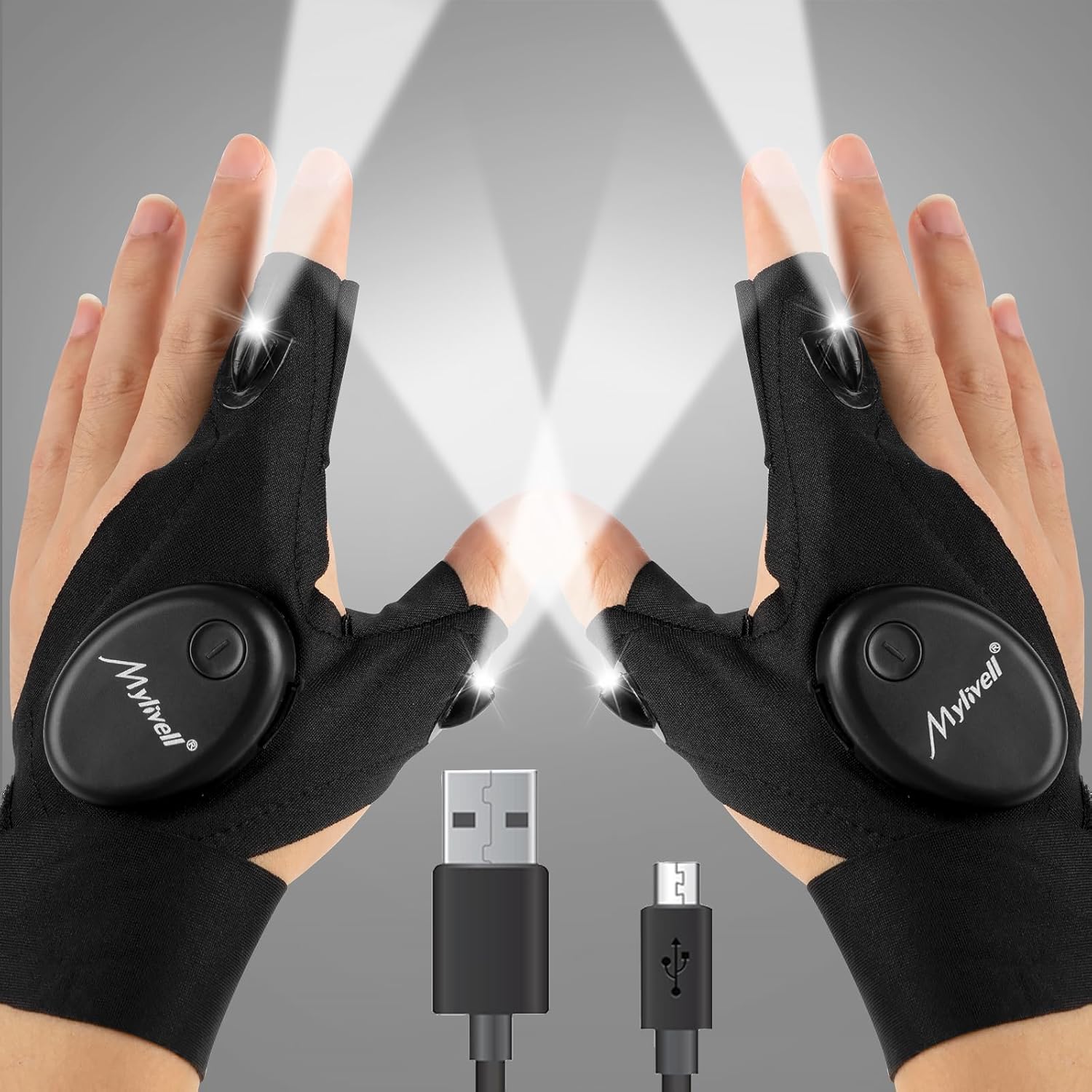 Mylivell Handsfree LED Flashlight Gloves Unique Gift for Men Women Dad Him Boyfriend Husband, Ideal for Fishing Camping Repairing Bright Flexible Rechargeable Fathers Day Christmas Birthday Gifts