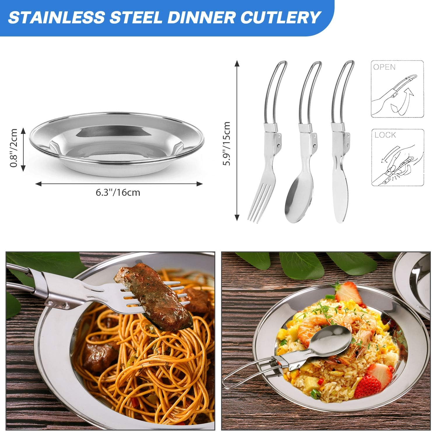 - Extra Stainless -Steel Dinner Cutleries - You also receive several accessories - 2 sets of dinner cutleries and 1 cleaning cloth. The dinner cutleries are made from 304 stainless steel which is completely safe to use. All the forks knives spoons are foldable and can be easily packed into the cloth bags for simple storages. The cleaning cloth is safe to use on the coated surface and allows you fast and easy clean-up after you're done.