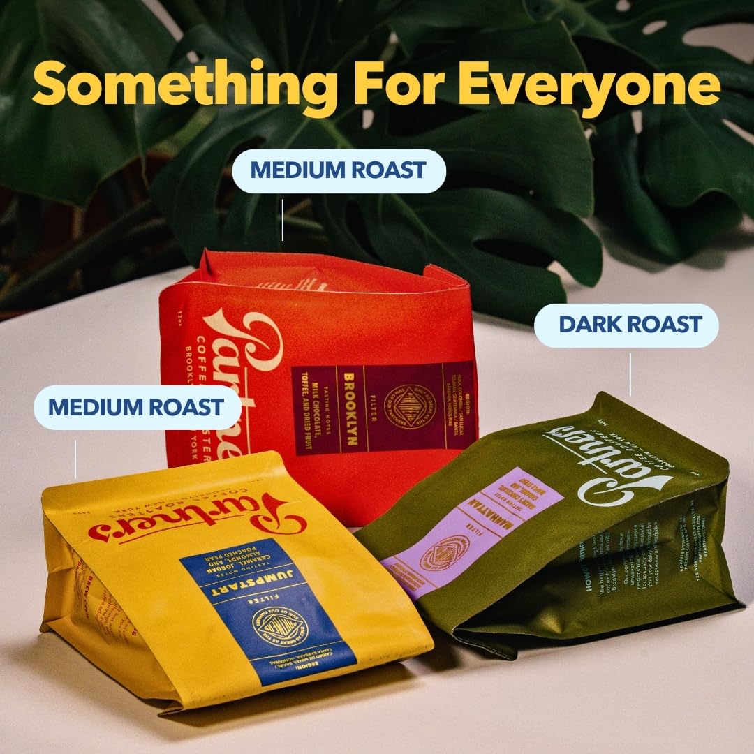 PARTNERS COFFEE ROASTERS - Whole Bean Coffee (Flatiron - Espresso, Medium-Dark Roast) 12oz - Classic Blend, Tastes Like Home - Dark Chocolate, Praline, Dates - Coffee Beans - Roasted in New York City