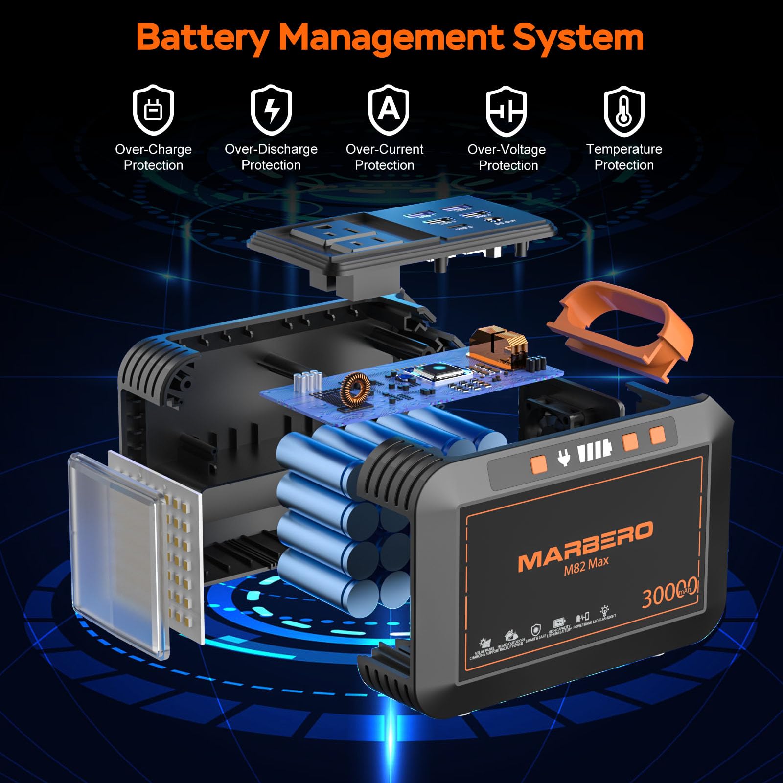 - SECURED & ASSURED: The Battery Management System (BMS) allows for voltage control, temperature control and more advanced safety operations. Designed with the cooling vents on the back to help this portable power supply keep the temperature constant, its internal electrical elements will not be damaged by high temperatures. When it comes to short circuit or overload, it automatically shuts off the power to protect itself and the powered devices.