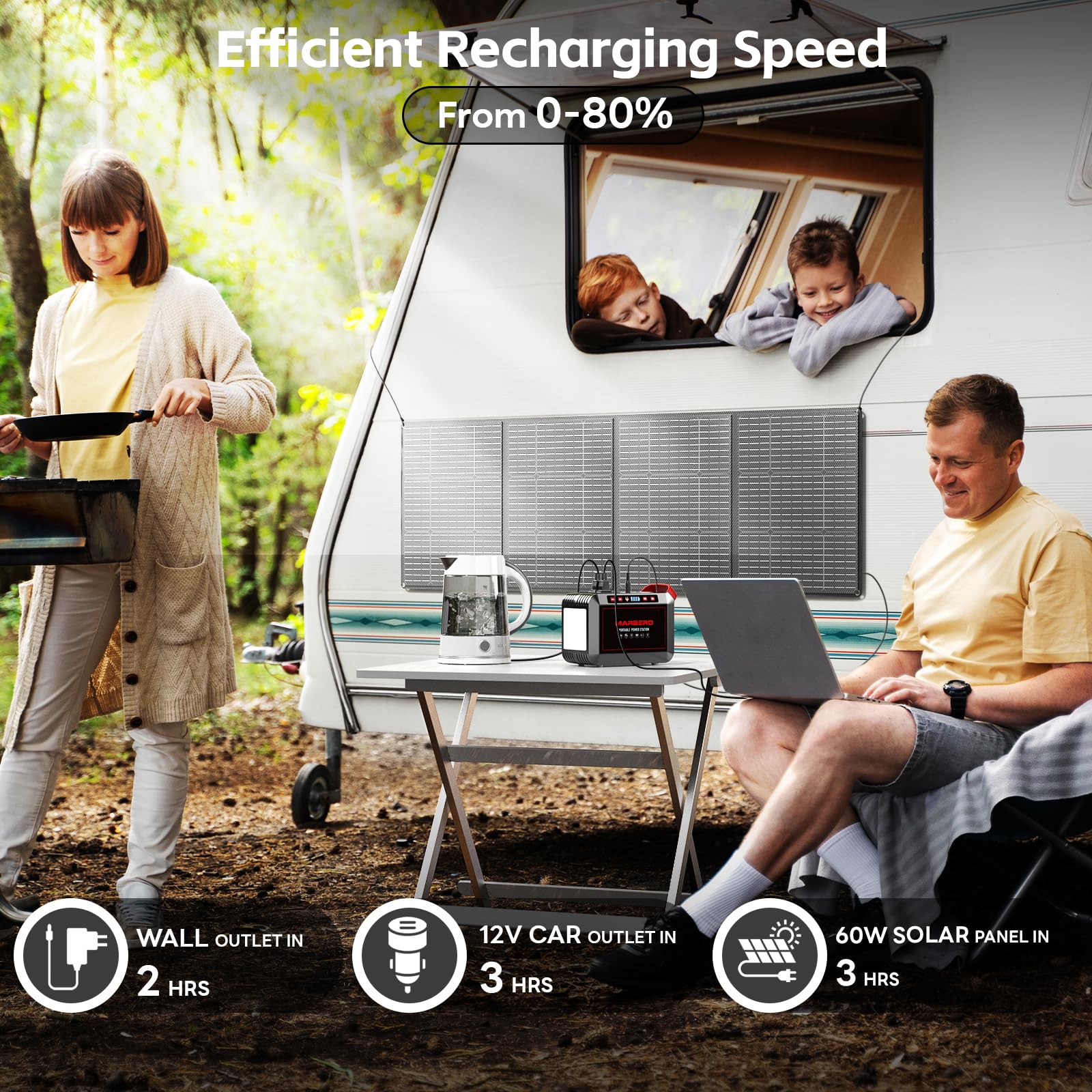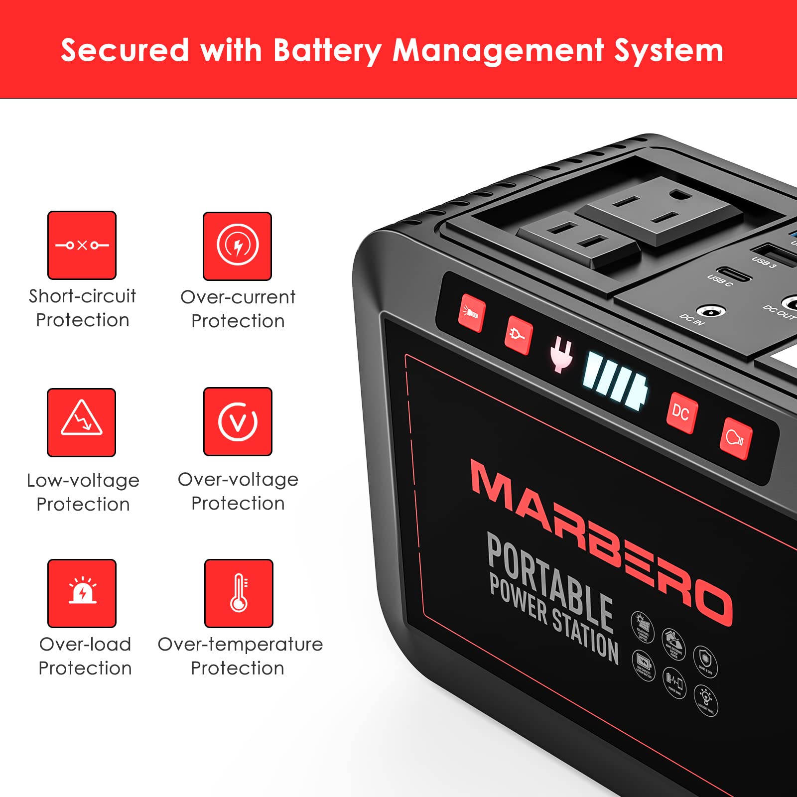 Portable Power Station 300W MARBERO 237Wh Camping Solar Generator Backup Lithium Battery with Pure Sine Wave 110V AC Outlet, USB C, USB A, DC for Outdoors Camping CPAP Home Blackout Emergency