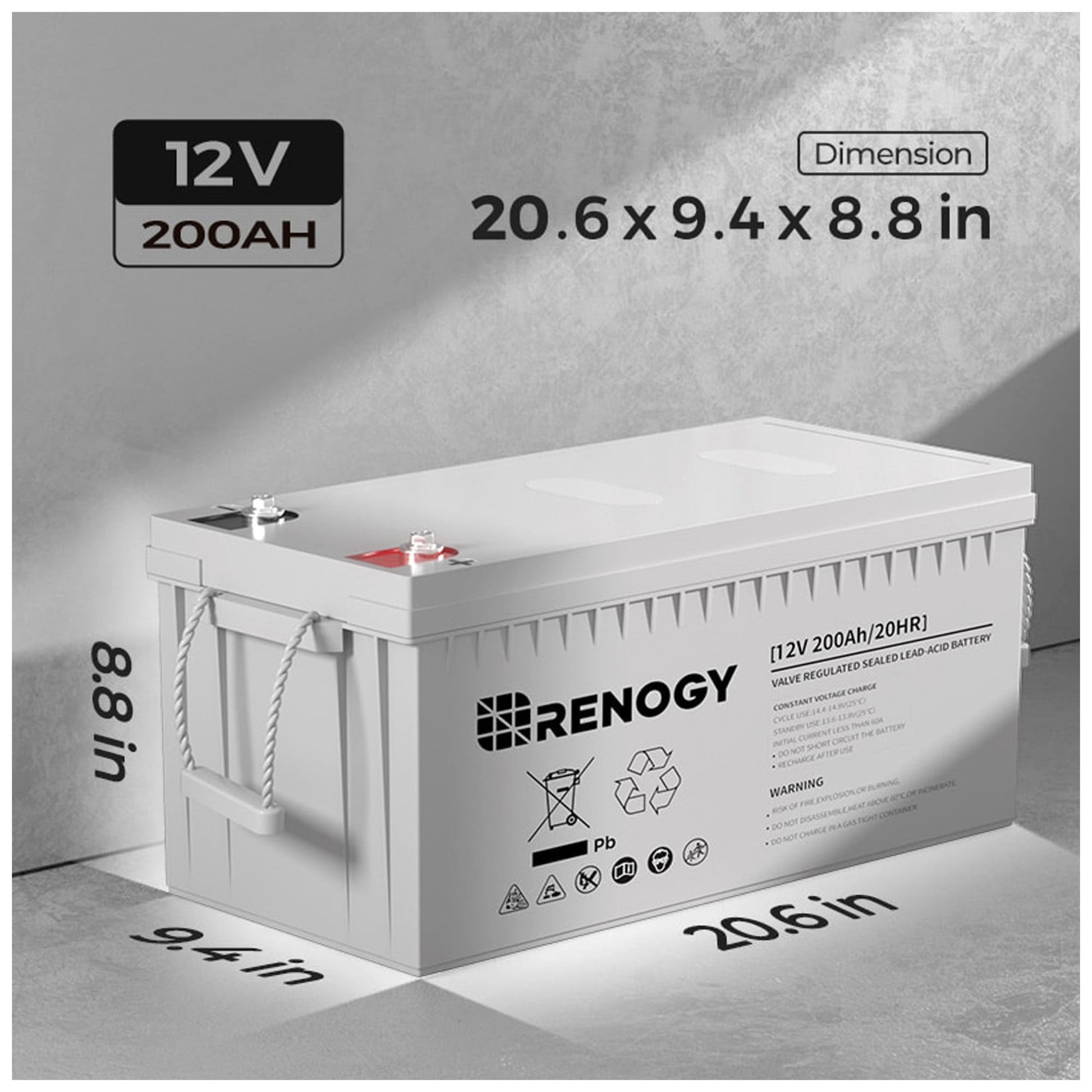 - Maintenance Free: Manufactured with thick absorbent Glass Mat (AGM) seperators and advanced valve regulated technology, Renogy deep cycle agm batteries save you from acid leakage and frequent maintenance..Batteries Required:no