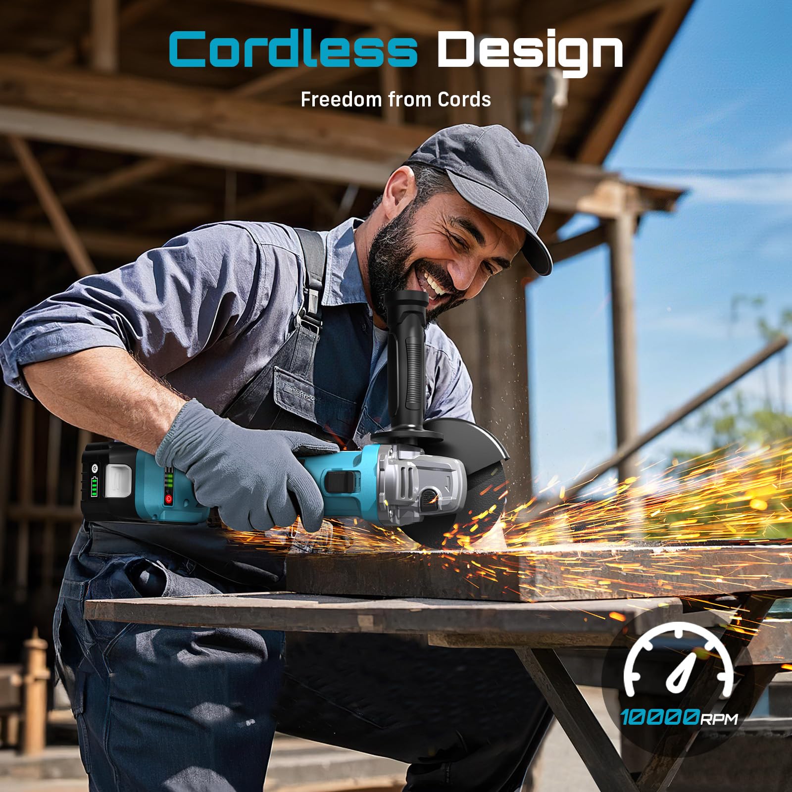 - 3-Speed Settings: This battery angle grinder offers three speed options—5000 RPM, 7500 RPM, and 10000 RPM, select the optimal speed to tackle a variety of tasks, from cutting and grinding to polishing. Adjust the speed for optimal performance based on your specific job
