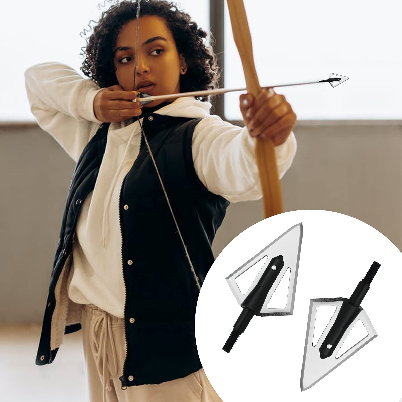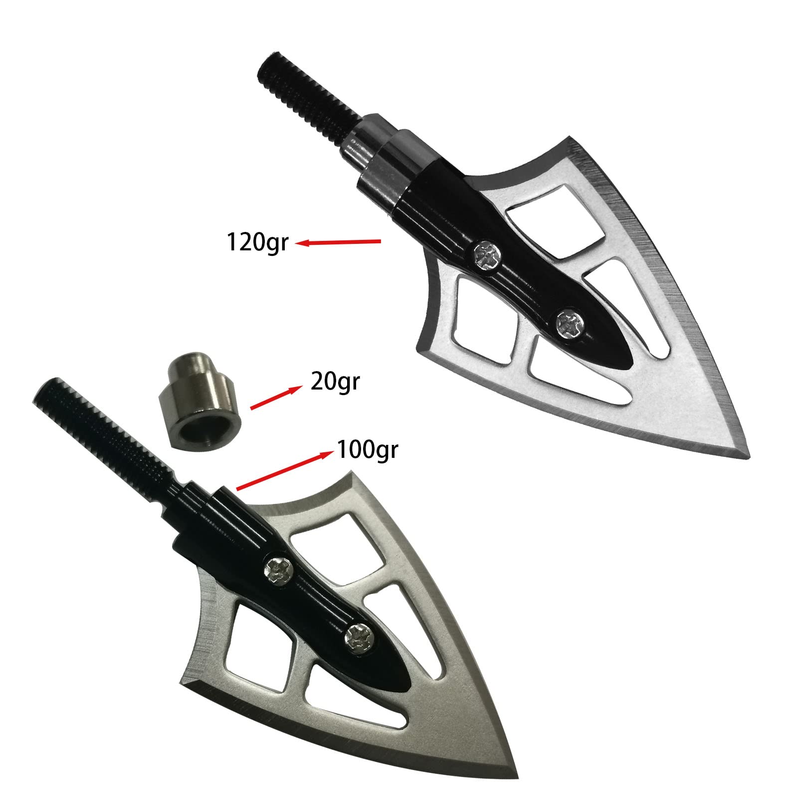 - 【Easy to Install and Use】The main shaft aluminum is anodized, the blade 420 steel heat treatment hardened toughness, can be re-sharpened, standard screw-in thread, compatible with all traditional bows and compound bows.