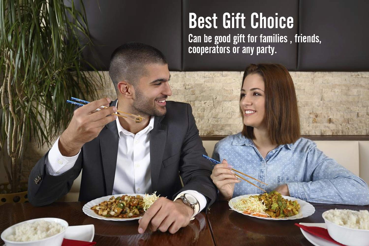- ✿ 【Gift Choice】: The metal chopsticks are with a pretty flower vine pattern on the blue background at the end of the chopstick. The elegant looking and the gift box package make the stainless steel chopsticks a very good presentation. Chopsticks mean good cooperation and best friendship. So they are a nice gift to friends, lovers, families, and cooperators for special days, like Christmas, birthdays, festival days. The reusable chopsticks use the longer and the love you present will last longer.