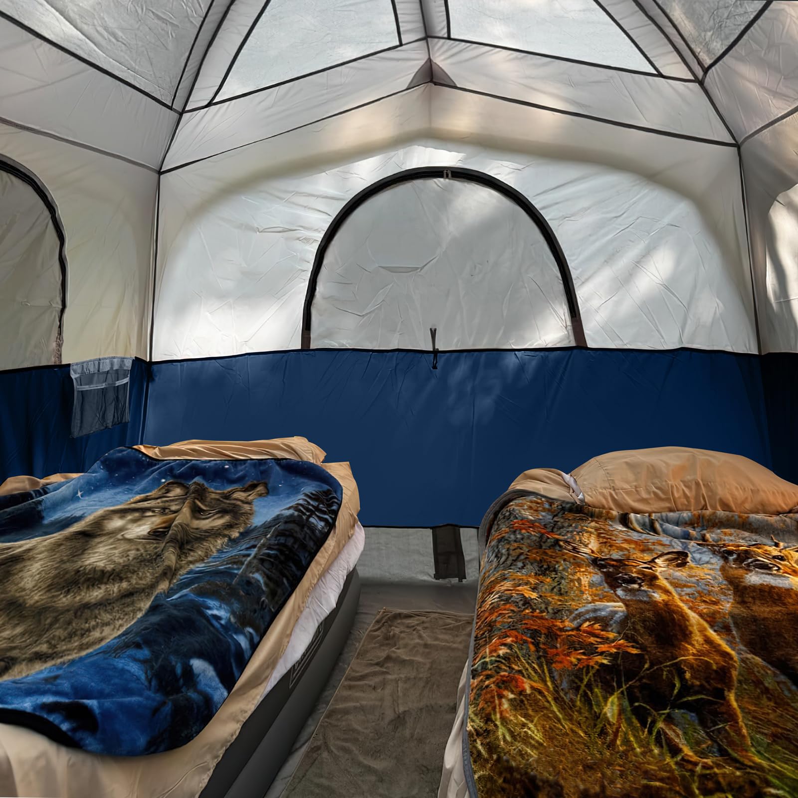 - Roomy 6 People Family Tent: Spacious design offers enough room for 6 people family, with a size 10' x 9' x 78"(H) (90 sq ft),2 air mattresses or 6 sleeping bags are well fit in the tent,78 inch center height is enough for you to stand up changing